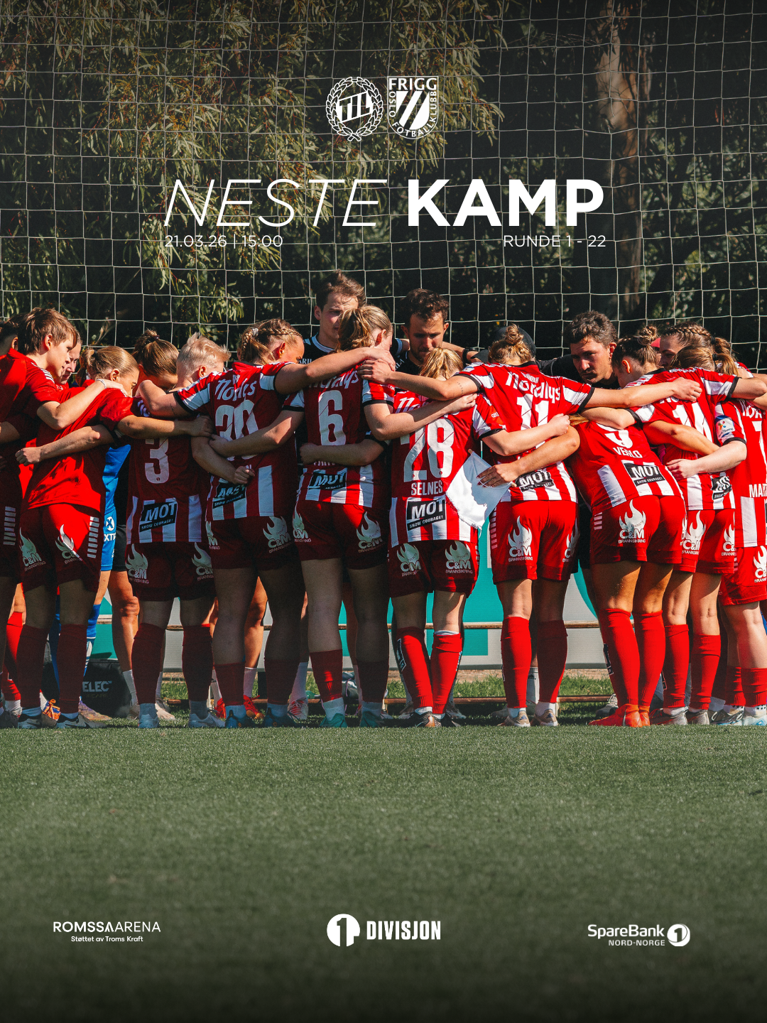 Lørdag 21. mars kl. 15:00 spiller Tromsø IL Kvinner sin første seriekamp på Romssa Arena. Vi får besøk av Frigg og håper at du også tar turen.